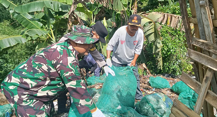 Kegiatan ini merupakan kolaborasi antara aparat TNI-Polri bersama komunitas lingkungan Sungai Watch, pelajar serta warga sekitar. Mereka bahu-membahu membersihkan tumpukan sampah di bantaran sungai yang mulai menumpuk akibat aktivitas rumah tangga.