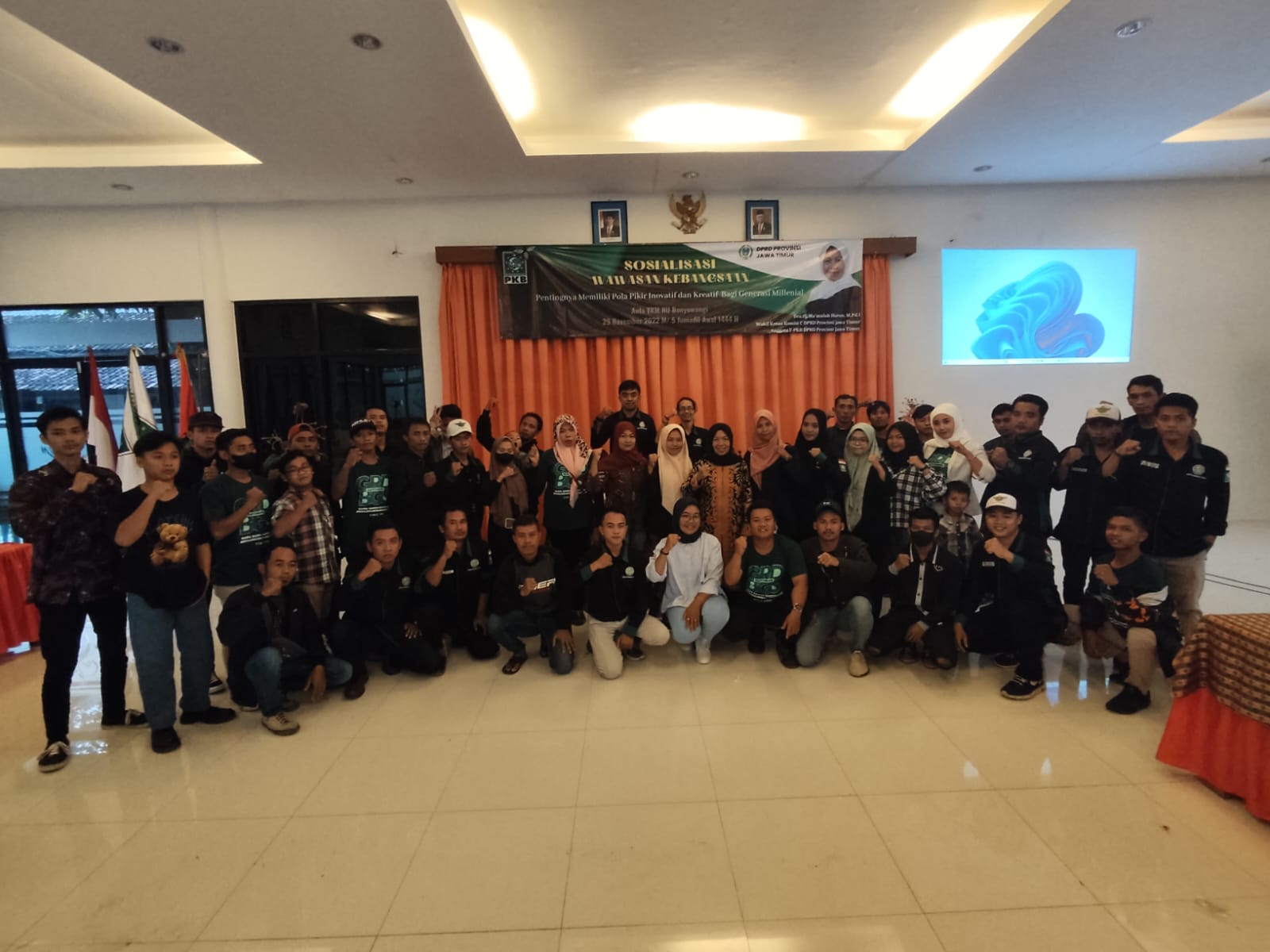 BWI24JAM,BANYUWANGI.-Dra Hj Ma'mulah Harun., M.Pd.I Wakil Ketua Komisi C DPRD Provinsi Jawa Timur Fraksi.PKB menggelar wawasan kebangsaan Banyuwangi pada Selasa (29/November/2022). Kegiatan ini mengusung tema "Pentingnya Memiliki Pola Pikir Inovatif dan Kreatif Bagi Generasi Millineal".