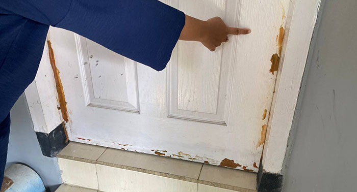 Bekas-bekas kerusakan pada pintu dan bangunan rumah juga seakan menjadi saksi bisu penderitaan warga terdampak banjir.