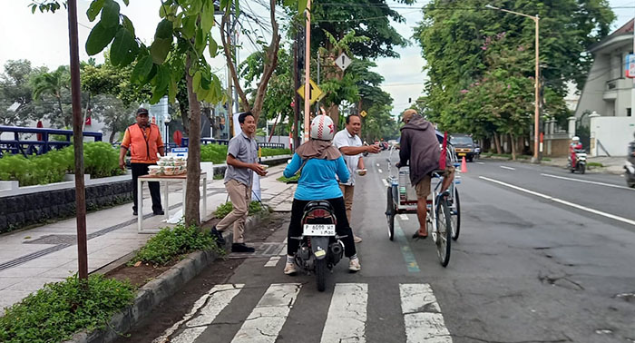 Tak ada panggung besar, tak ada seremoni. Hanya karyawan berseragam kerja, berdiri sejak pagi buta, menyapa siapa saja yang melintas, mulai pengendara motor, tukang becak, pedagang kecil, hingga warga sekitar.