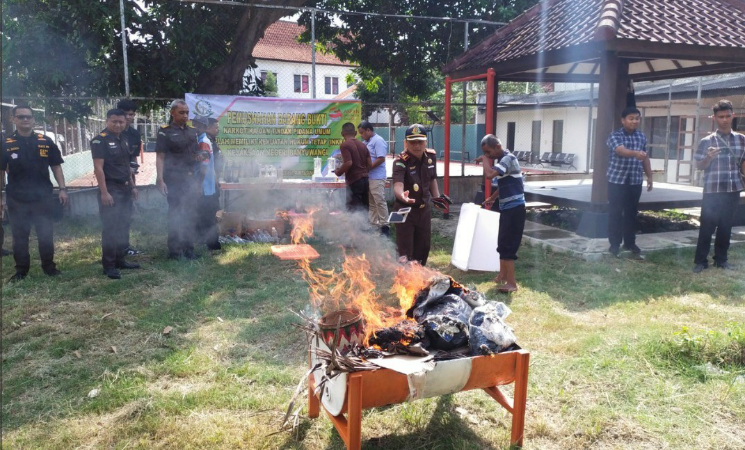 Pemusnahan barang bukti ini dipimpin langsung oleh Kepala Kejaksaan Negeri Banyuwangi Suhardjono.