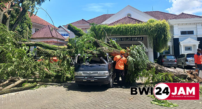 Angin Kencang, Pohon Tumbang di RSUD Genteng Ringsekkan Mobil Milik Keluarga Pasien