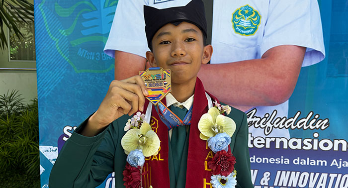 Siswa kelas VIII tersebut berhasil meraih medali emas dalam ajang World Youth STEM Invention Innovation (WYSII) 2026 yang digelar di Thailand. WYSII merupakan kompetisi riset dan inovasi sains tingkat internasional yang diikuti oleh inovator muda dari berbagai negara.