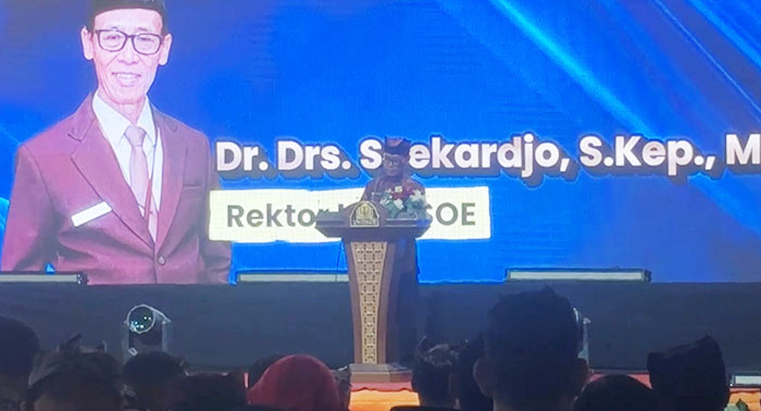 Rektor UNIDSOE, Dr. Soekardjo, dalam sambutannya menjelaskan bahwa acara ini menjadi momen untuk mengumumkan peningkatan status kampus kepada masyarakat.